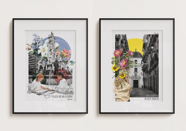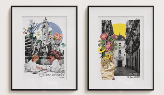 La artista alicantina presenta una colección de 16 collages dedicados a los espacios más emblemáticos de Alicante: desde la Plaza de los Luceros, Explanada, Castillo de Santa Bárbara, Playa del Postiguet, Mercado Central, MARQ hasta otros símbolos esenciales de la ciudad. Hay ciudades que se