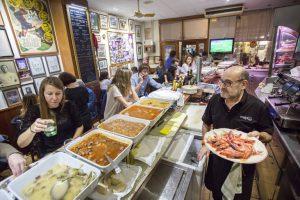 Los parroquianos se acodan en la barra a la espera de la mesa que los convierta en más sedentarios todavía de lo que por múltiples circunstancias están condenados a ser.
