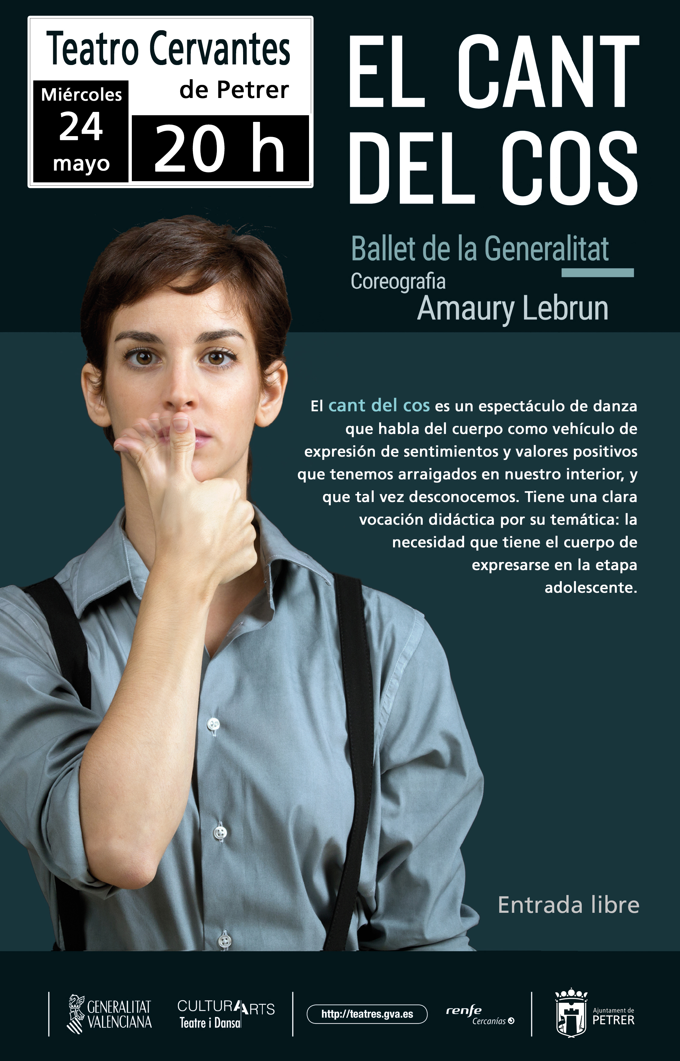 El próximo miércoles, 24 de mayo, a las 20 horas, el escenario del Teatro Municipal Cervantes de Petrer acogerá la representación del espectáculo de danza «El cant del cos», a cargo del Ballet de la Generalitat.