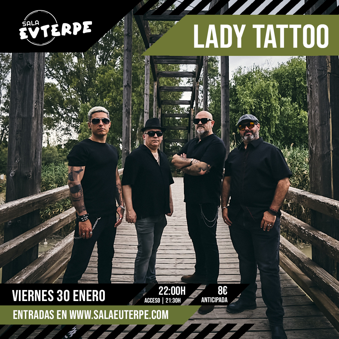 El viernes 30 de enero a las 22h, subirán al escenario de Sala Euterpe la banda murciana de rock Lady Tattoo, que inicia 2026 con «Rodar y Rodar Tour», una ambiciosa gira que les llevará a recorrer buena parte de la geografía nacional. Tras el estreno en su ciudad de origen, Murcia, visitan la Sala Euterpe (San Juan de Alicante) por primera vez para dar a conocer su rock canalla y divertido. Una banda en constante progreso y evolución, vuelven a tierras alicantinas tras más de tres años de su última visita.